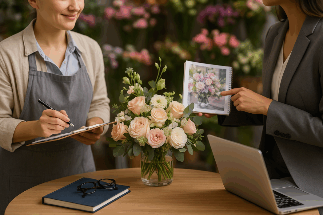 挙式・披露宴装花、搬入出費用、設営・撤収料などは明確に分けて提示します。価格交渉に備え、代替花材案や「季節のおすすめプラン」を併記すると柔軟な印象になります。
